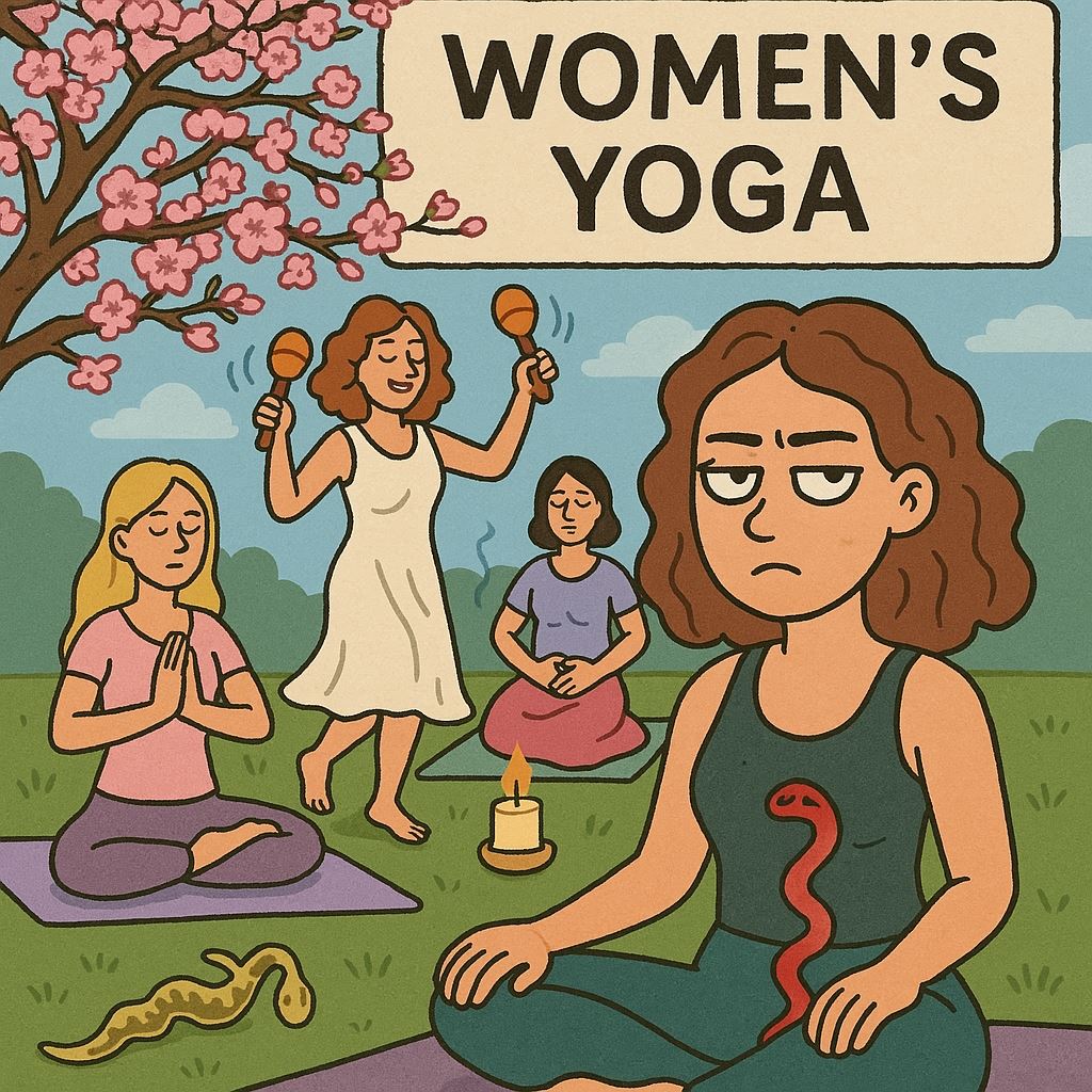 При этом под видом «женской йоги» порой предлагают всё что угодно — от медитаций на сакуру, до танцев с маракасами, дыхания маткой и обрядов пробуждения Кундалини.