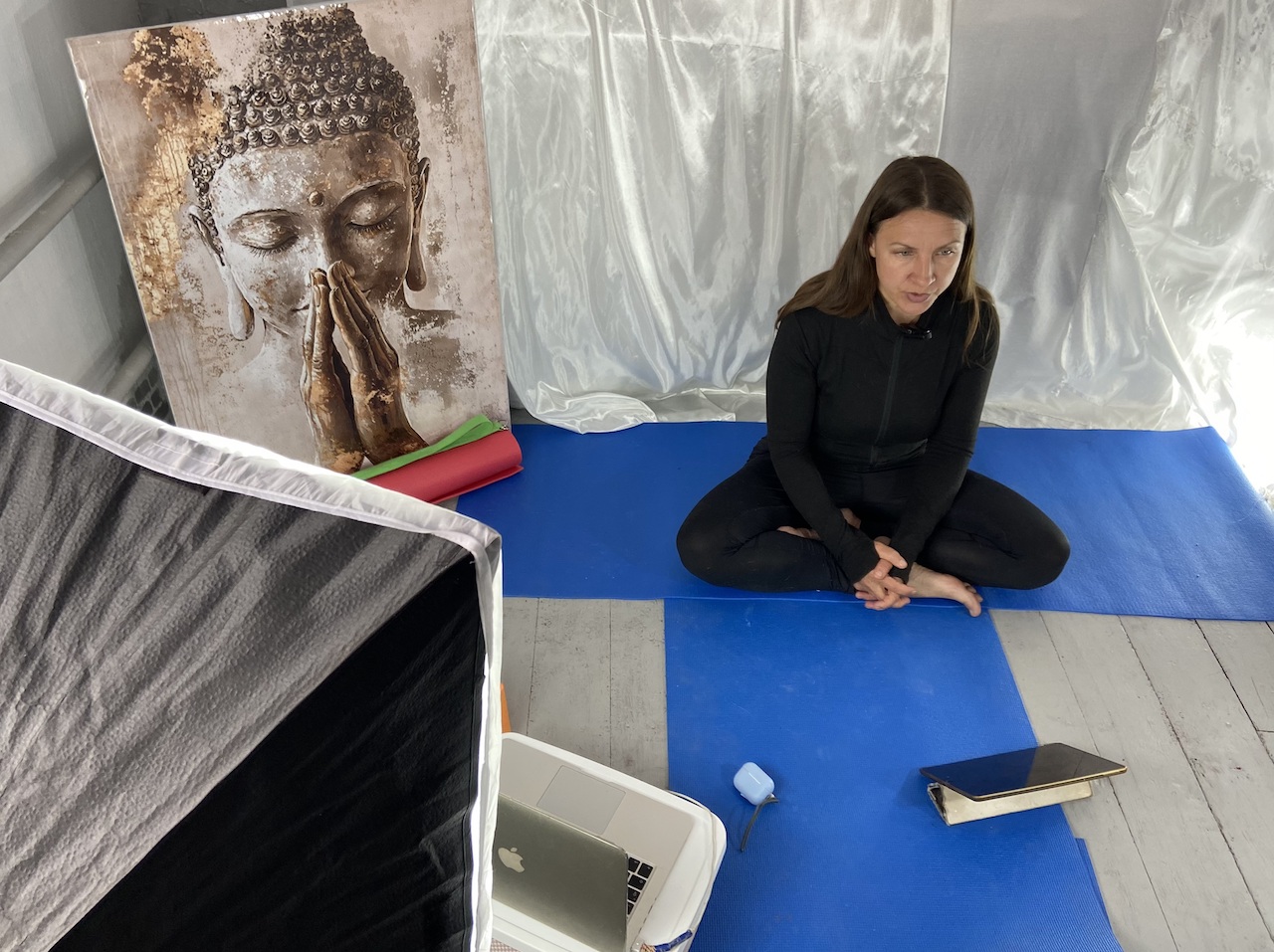 Вы можете включить камеру и практиковать вместе с нами или просто наблюдать (мы свои камеры включим обязательно!). Это будет живое взаимодействие в реальном времени.